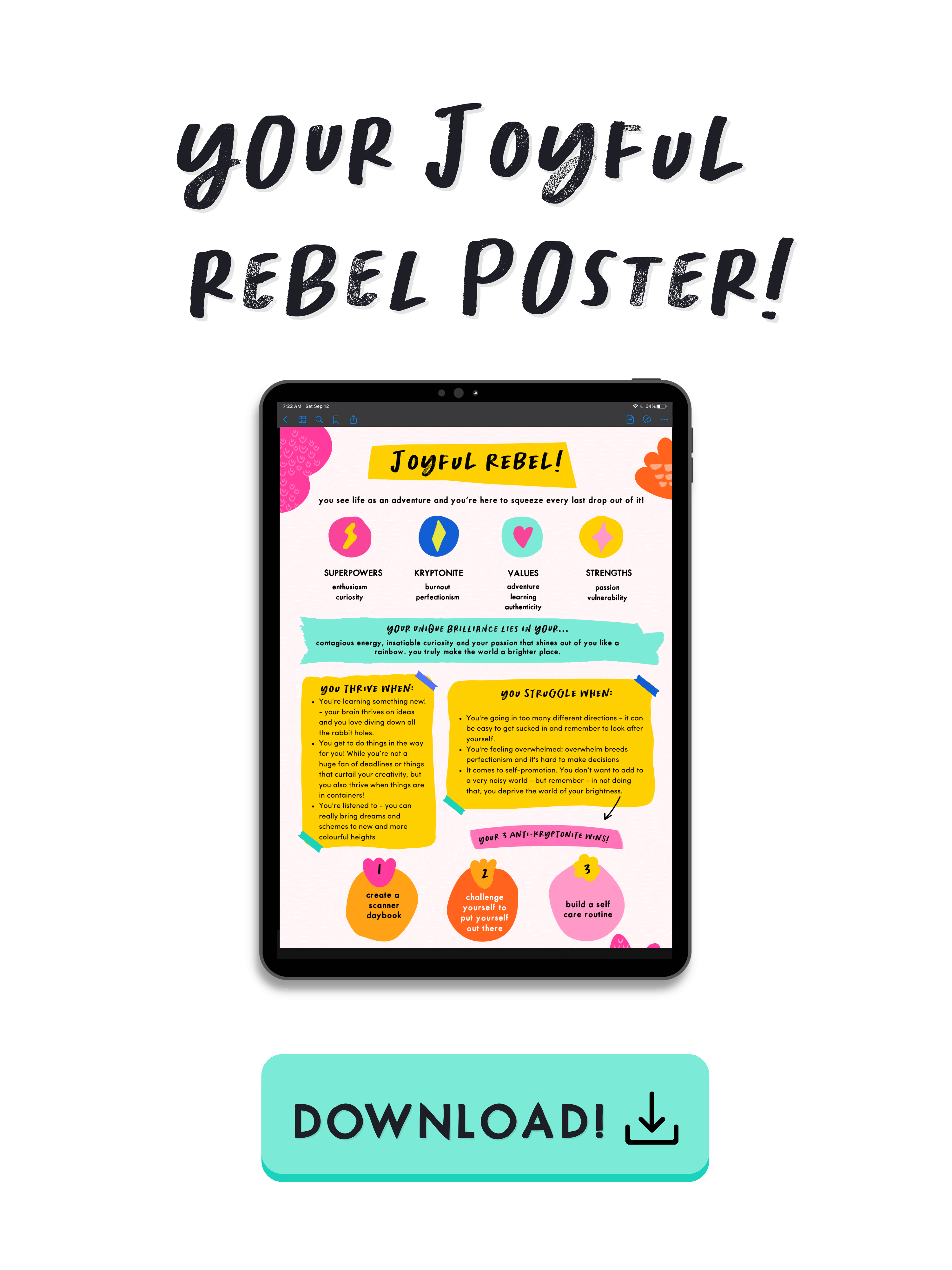 Download and print your Joyful Rebel poster below to have a visual reminder of how fucking awesome you are! Next up: Join the Rebel Community!